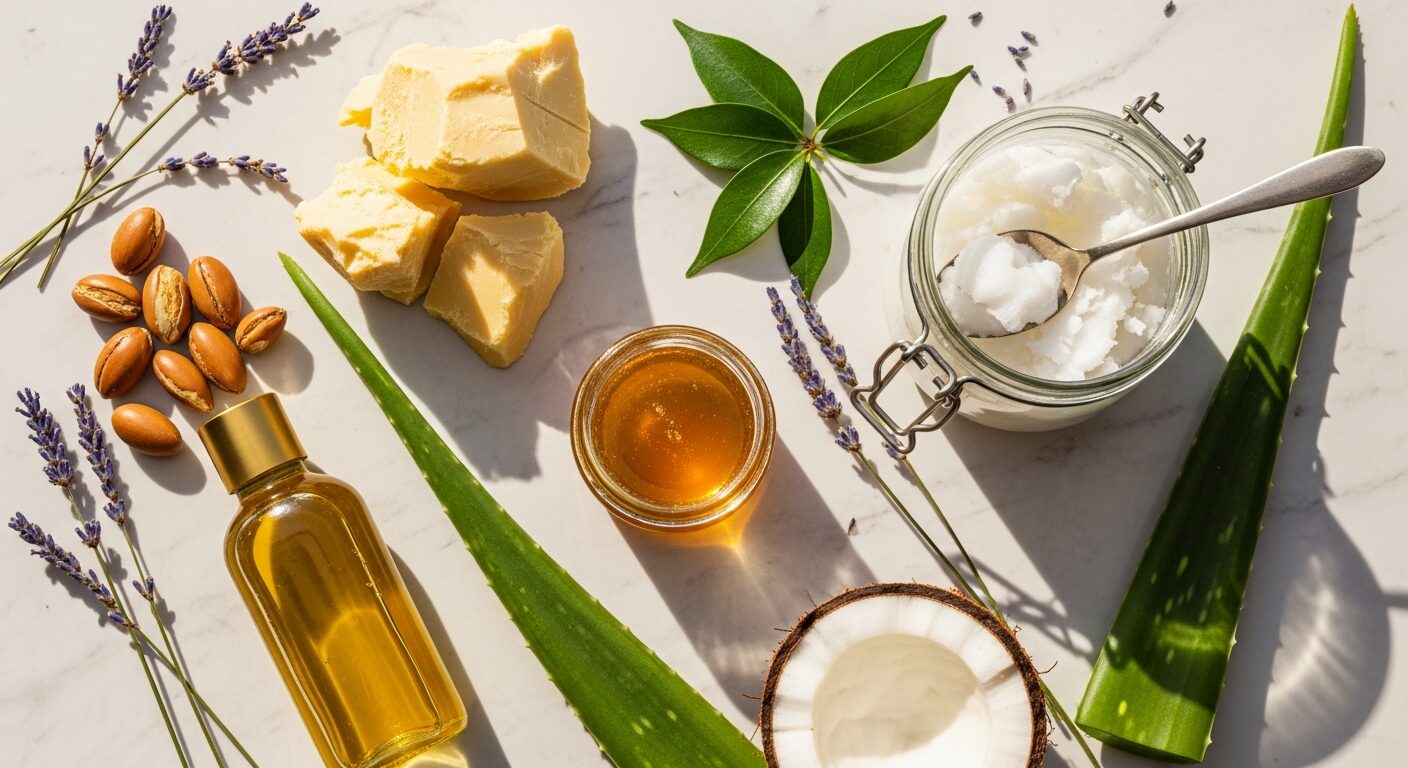 - Coconut oil — Penetrates the hair shaft for deep conditioning