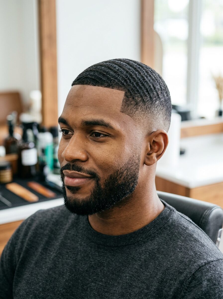 This creates a subtle yet polished look that works well with waves, curls, or short afros.
